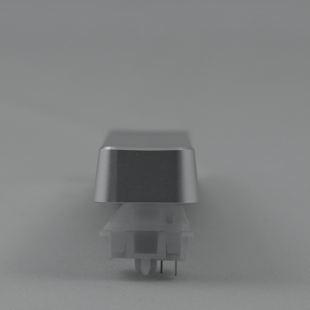 The earlier all-metal stems were visually striking but caused wear on switch stems over time. For this collection, we developed a new hybrid structure: a machined aluminum body fitted with a precision-molded plastic stem.