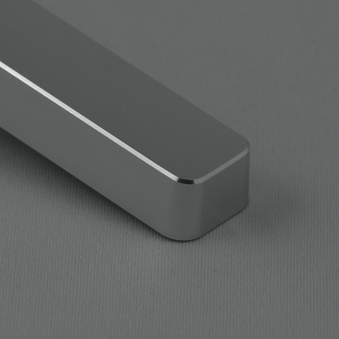 The surface is first sandblasted and acid-etched, giving it a fine, matte texture. A secondary machining and polishing process then exposes the chamfered edge, turning it into a mirror-like highlight that catches and bends light from every angle. The result is a dynamic contrast between satin and shine. A balance that defines the look and feel of the ESSENSE Collection.